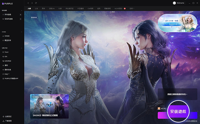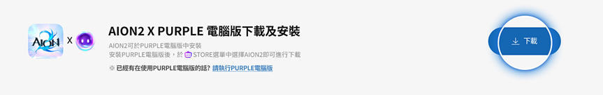 安裝PURPLE電腦版後,於STORE選單中選擇AION2即可進行下載※ 已經有在使用PURPLE電腦版的話? 請執行PURPLE電腦版